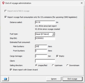 CO₂-registratie voor Green Award – Aan het einde van elke reis kunt u uw brandstofverbruik en reisgegevens delen met Green Award Foundation. Eén vinkje in uw vertrouwde “End of voyage”-scherm. Meer is het niet.